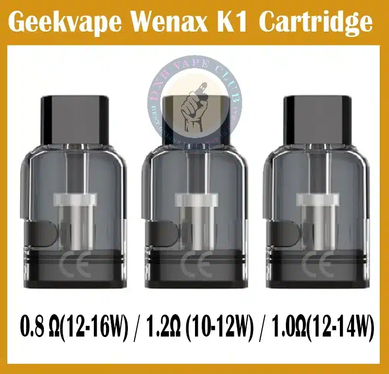 Have a glance at the Geekvape Wenax K1 Cartridge Pod 2ml that has been made in particular. Feature: 1.2ohm and 0.8 ohm resistance for your selection Simple side refill system to make every step a breeze’}). The Geek vape Wenax K1 cartridge features a 2ml refillable restriction, as well and is designed to allow for puffs of around 300–400. More puffs for fewer bucks.