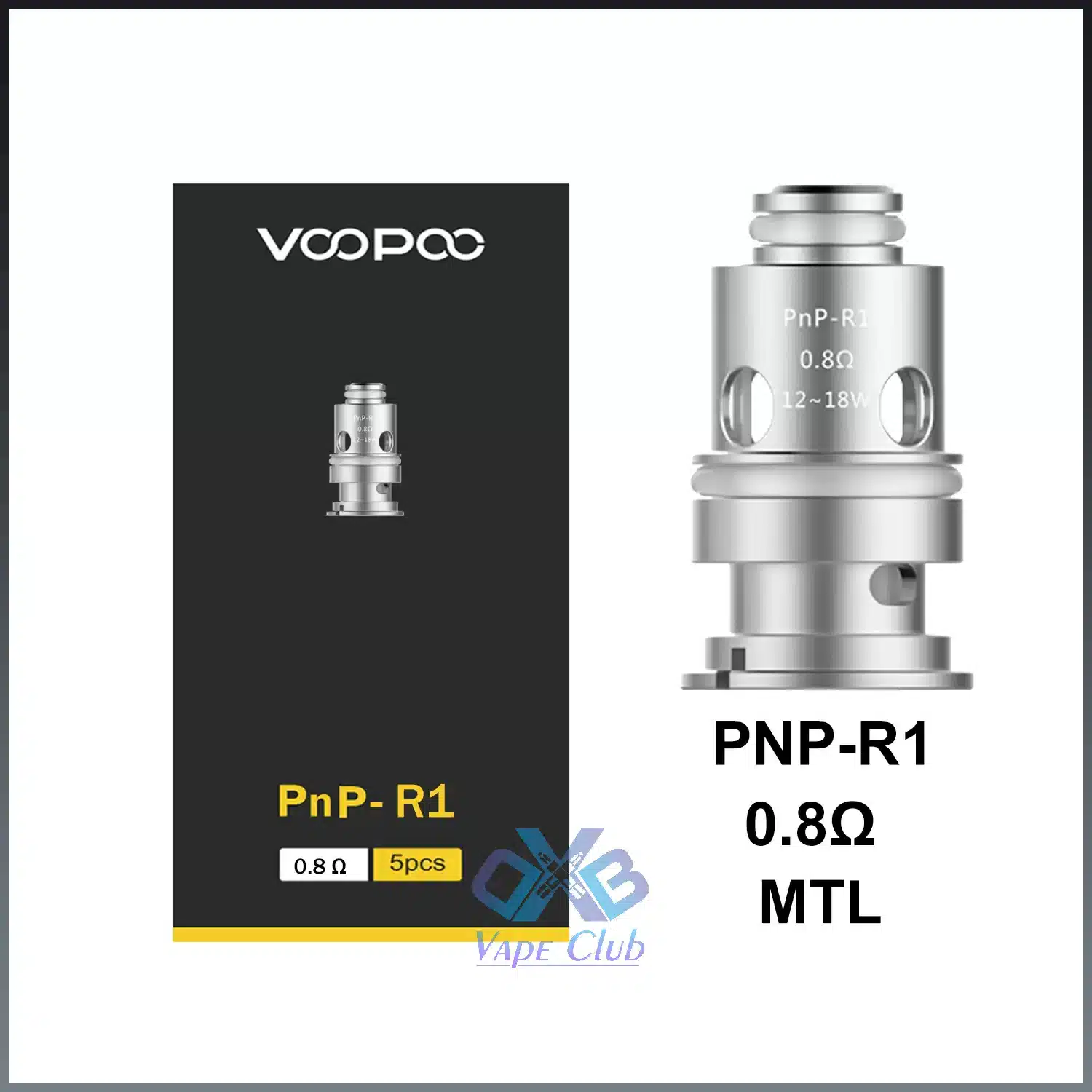 - PnP-R1 Coil: MTL 0.8ohm Dual coil, 12-18W, recommended Nic Salt e-liquid (nicotine ≤ 35mg best)