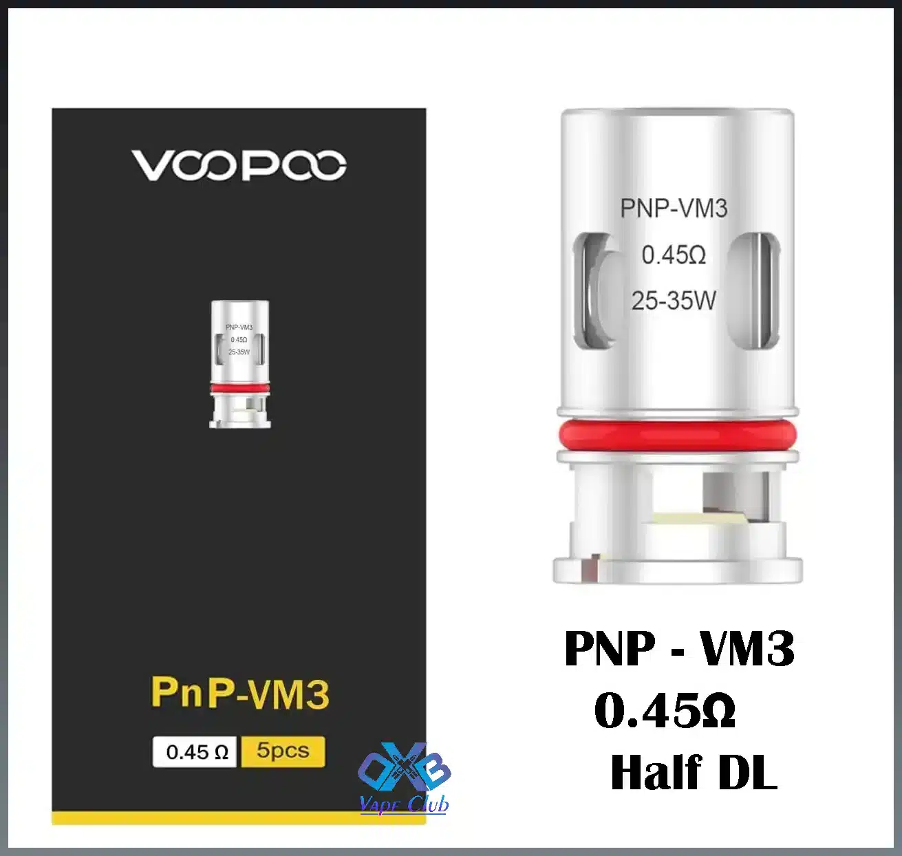 - PnP-VM3 Coil: DL 0.45ohm Mesh Coil – rated for 25-35W