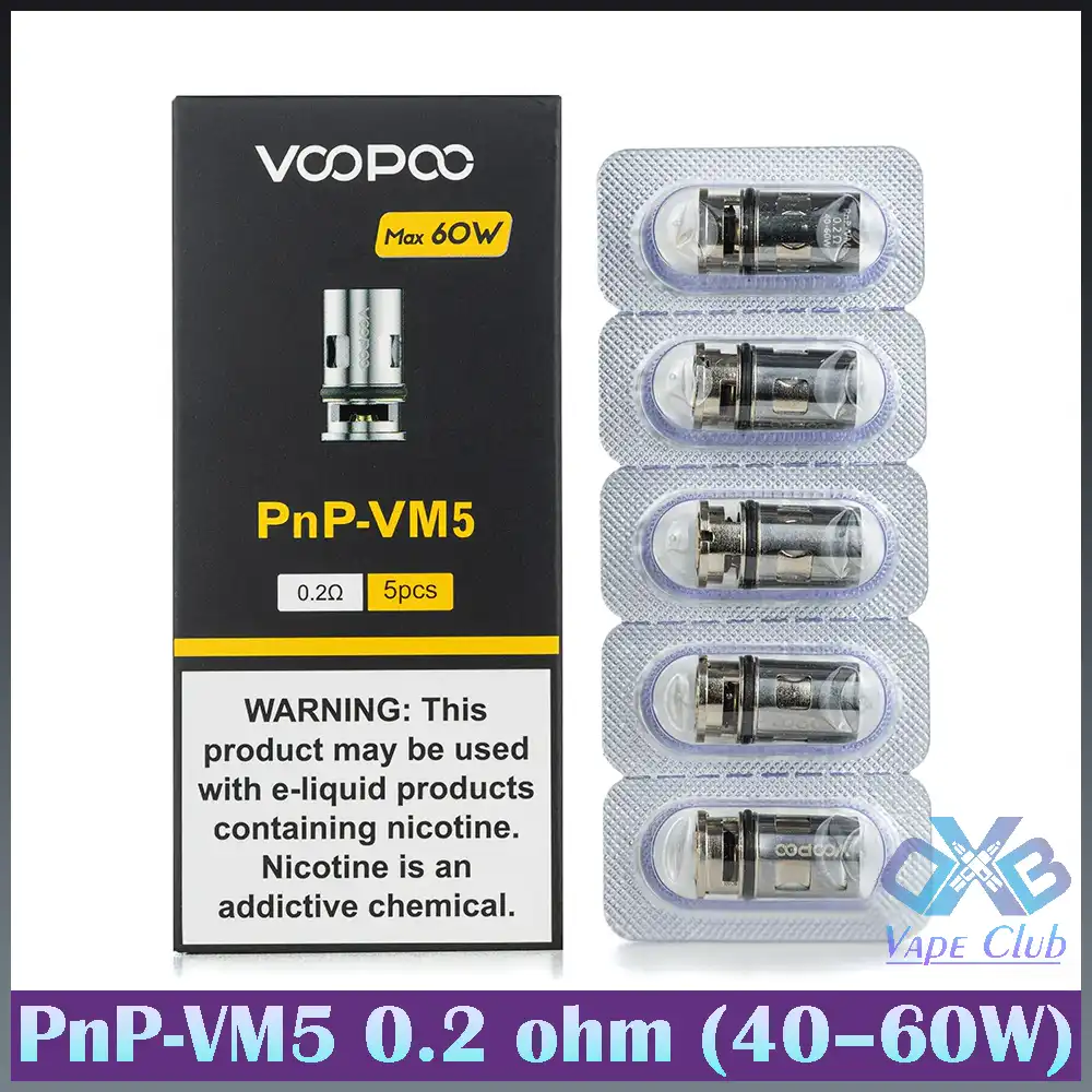 - PnP-VM5 Coil: DL 0.2ohm Mesh rated for 40-60W